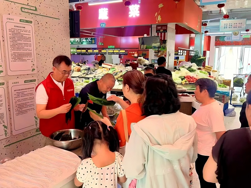 在市投集市未來路農(nóng)貿(mào)市場,市場組織的“粽情端午,樂購市投”活動,吸引了眾多周邊社區(qū)居民熱情參與,大家共聚一堂,包粽子、品美食、享優(yōu)惠,在歡聲笑語中感受傳統(tǒng)節(jié)日的魅力。