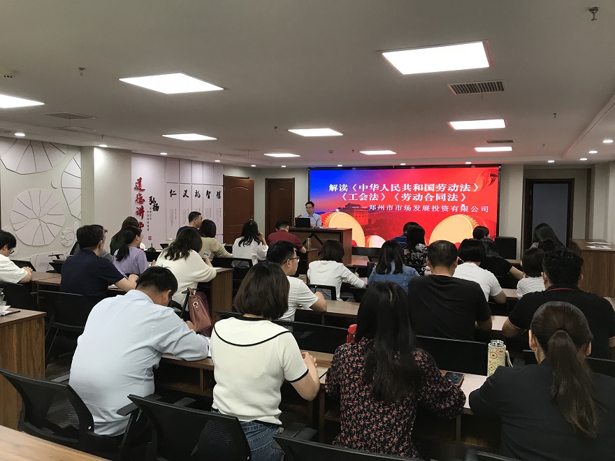 根據(jù)《2021年鄭州市普法依法治理工作要點(diǎn)》文件精神和市國資委關(guān)于普法教育工作要求,為扎實(shí)推進(jìn)普法依法治理工作,為“八五”普法開好局、起好步,5月13日下午,鄭州市市場發(fā)展投資有限公司組織開展《中華人民共和國勞動法》《工會法》《勞動合同法》等法律知識講座,公司本部全體人員、各子公司中層以上管理人員及法務(wù)部、經(jīng)營部工作人員參加培訓(xùn)。