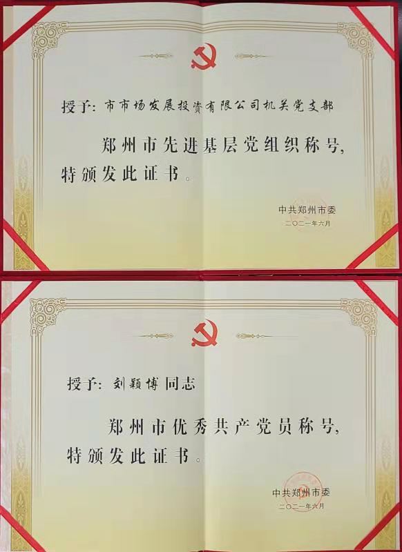 七一前夕,鄭州市召開“兩優(yōu)一先”表彰大會,隆重表彰為鄭州作出突出貢獻(xiàn)的優(yōu)秀黨員、優(yōu)秀黨務(wù)工作者和先進(jìn)基層黨組織。會上,公司機(jī)關(guān)黨支部榮獲“鄭州市先進(jìn)基層黨組織”榮譽(yù)稱號,公司董事會秘書兼投資管理中心總監(jiān)、河南省暢尚農(nóng)業(yè)科技有限公司總經(jīng)理劉穎博榮獲“鄭州市優(yōu)秀共產(chǎn)黨員”榮譽(yù)稱號。